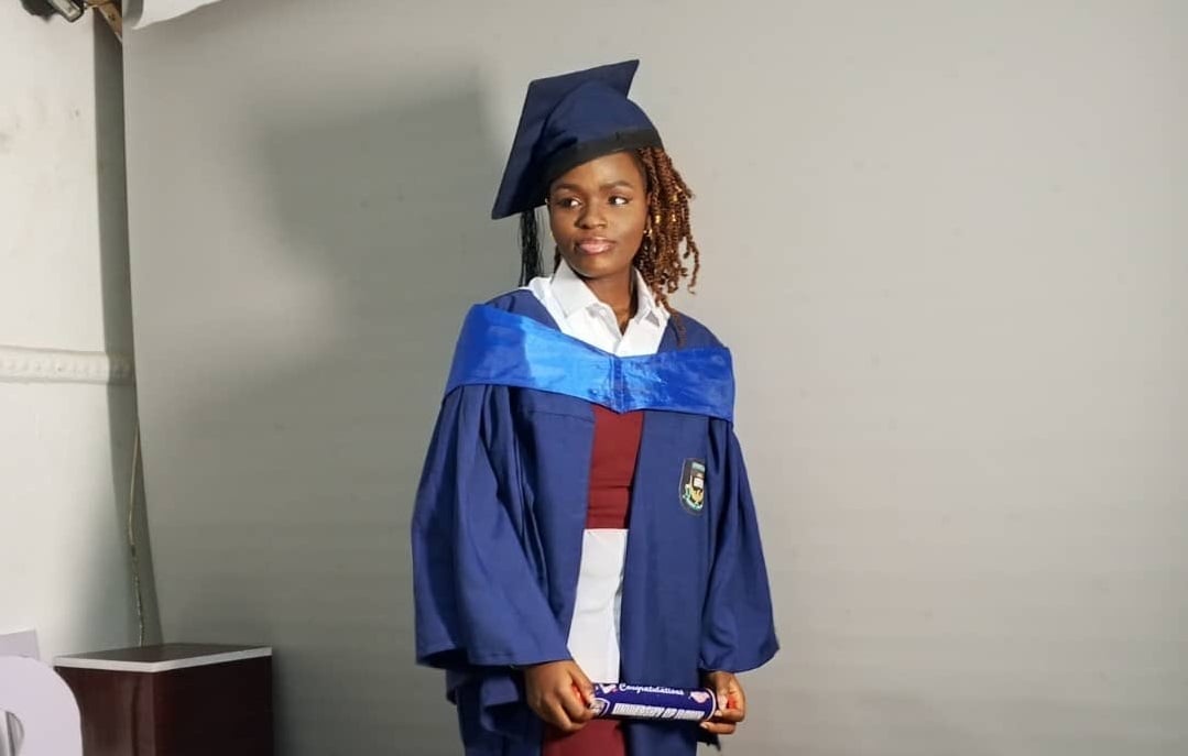 “Ese graduated 2nd Class Upper Division in Education Technology today at the University of Ilorin and now stands as a testament of what a determined mind can accomplish.