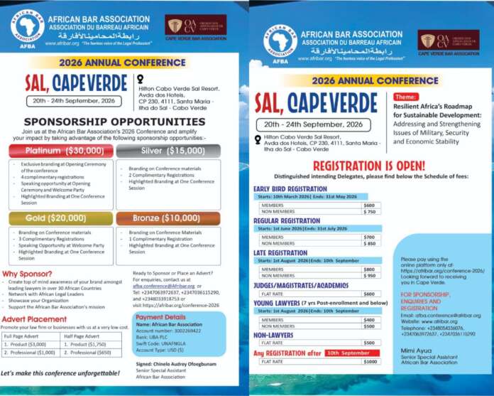 With insecurity spreading across regions and economic pressures reshaping governance priorities, the African Bar Association (AfBA) has issued a sweeping call for papers ahead of its 2026 Annual Conference—seeking bold legal ideas to confront what it describes as Africa’s most defining challenges.