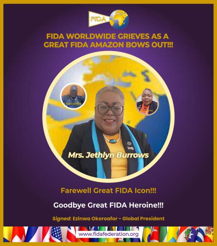 “This is to further express my deep condolences on the home call of our dear sister and former International President of FIDA International, Jethyln Burrows.