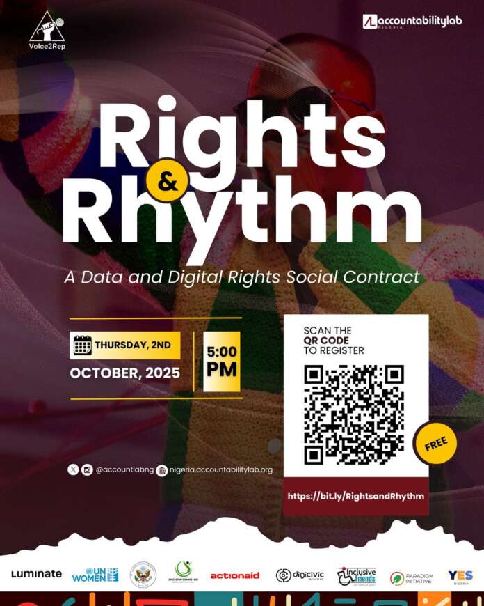 Join us on October 2nd for the Voice2Rep Rights & Rhythm Concert, proudly organized by Accountability Lab Nigeria in collaboration with ActionAid, Yes Academy, Paradigm Initiative, US Embassy, UN Women, and DIGICIVIC.