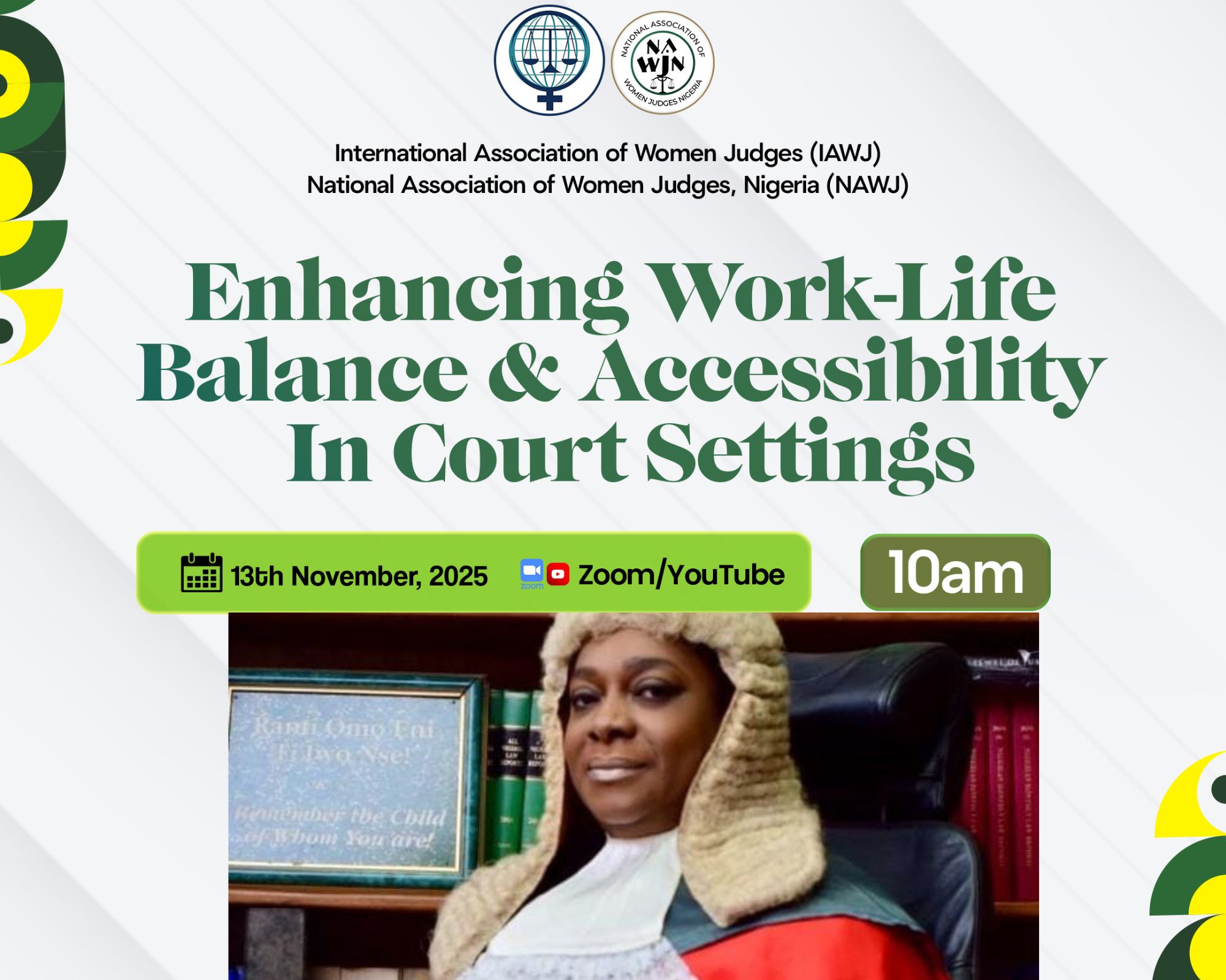 On November 13, she will headline a virtual event themed “Enhancing Work-Life Balance and Accessibility in Court Settings,” organised by the National Association of Women Judges of Nigeria (NAWJN) in partnership with the International Association of Women Judges (IAWJ).