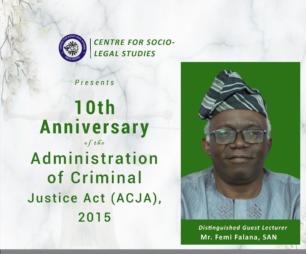 He spoke at a public lecture marking the 10th anniversary of the Administration of Criminal Justice Act (ACJA) 2015, hosted by the Centre for Socio-Legal Studies (CSLS) in Abuja.