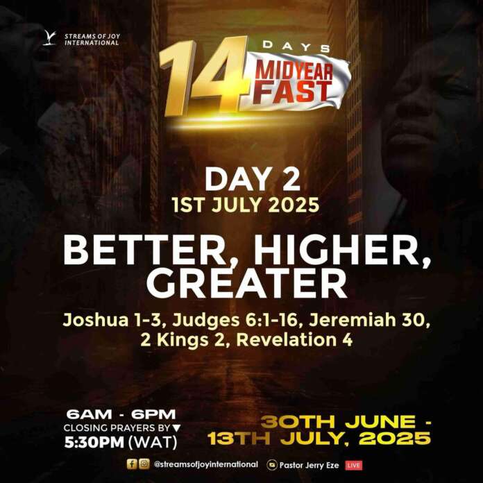 Day 2 of our 14 day midyear fasting and prayers: “BETTER, HIGHER, GREATER”🔥🔥🔥