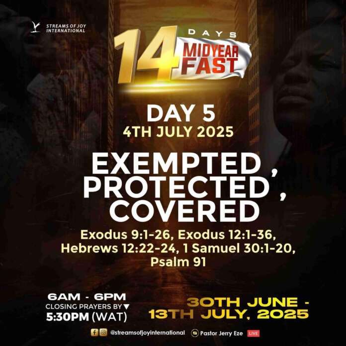 DAY 5 IS HERE – This Second Half You are EXEMPTED, PROTECTED, COVERED!!! Remember to Study/Meditate on Exodus 9:1-26, 12:1-36, Hebrews 12:22-24, 1 Samuel 30:1-20, Psalm 91