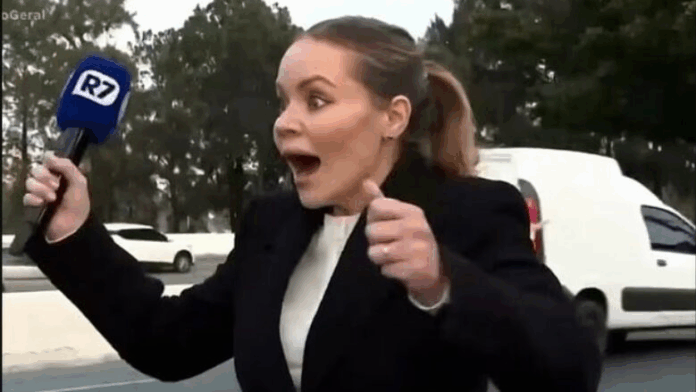 Around the world, journalists face all manner of challenges, including during live broadcasts. But one Brazilian journalist got more than she bargained for.